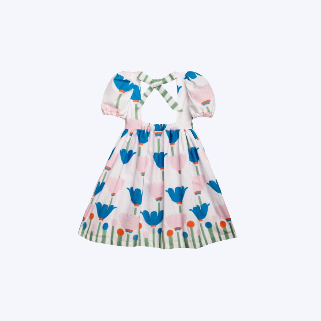 Combine o vestido de flores com sandálias ou tênis leves para um look completo e confortável para sua menina.
