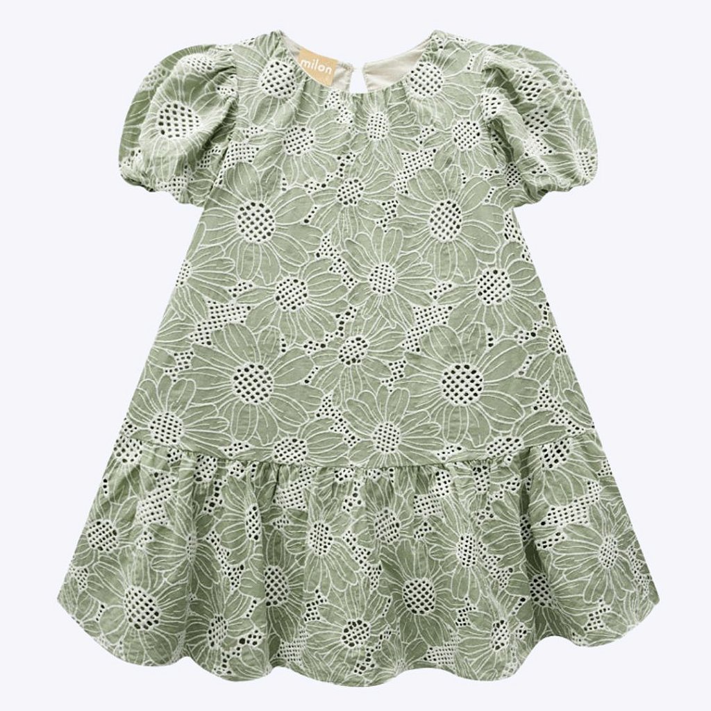 Deslumbre-se com a elegância e a delicadeza do Vestido Infantil da Milon, uma peça confeccionada para tornar momentos especiais ainda mais encantadores. Feito em laise 100% algodão, com um forro composto por 80% poliéster e 20% algodão, este vestido oferece uma combinação perfeita de leveza, conforto e sofisticação.