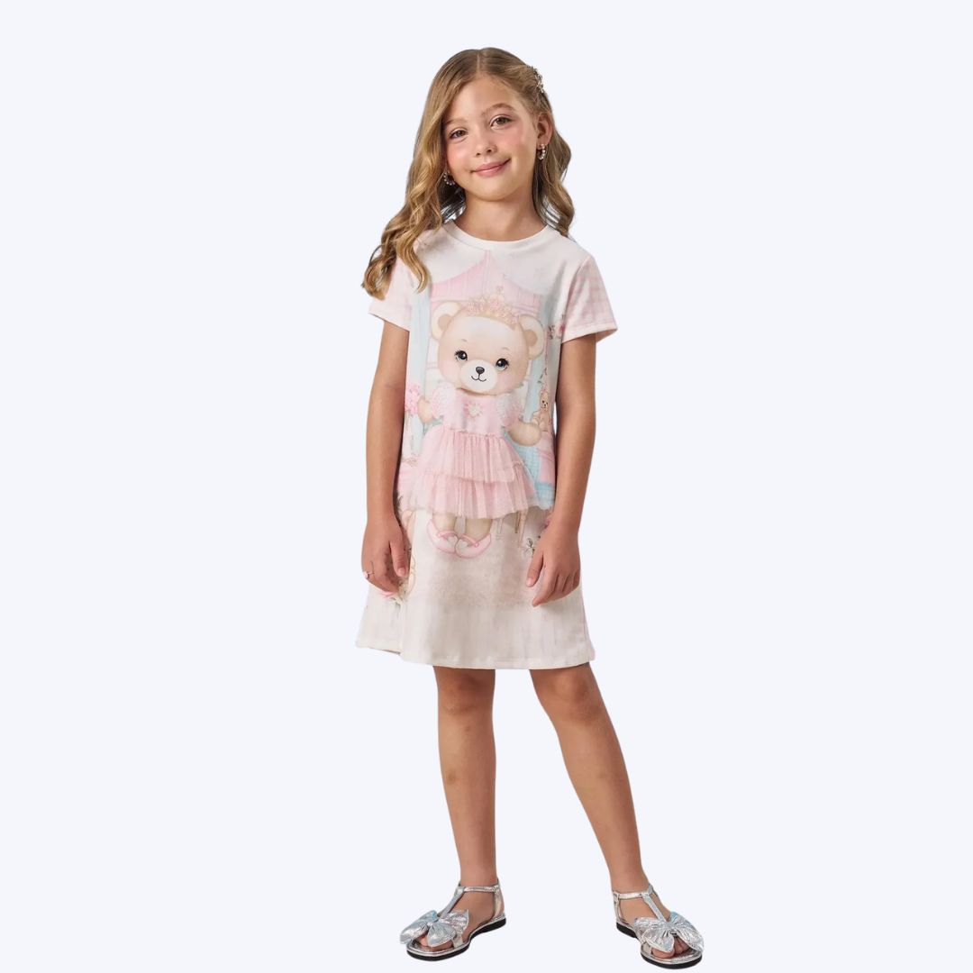 Vestido Manga Curta Molecotton Ursinha Infantil Menina Infanti