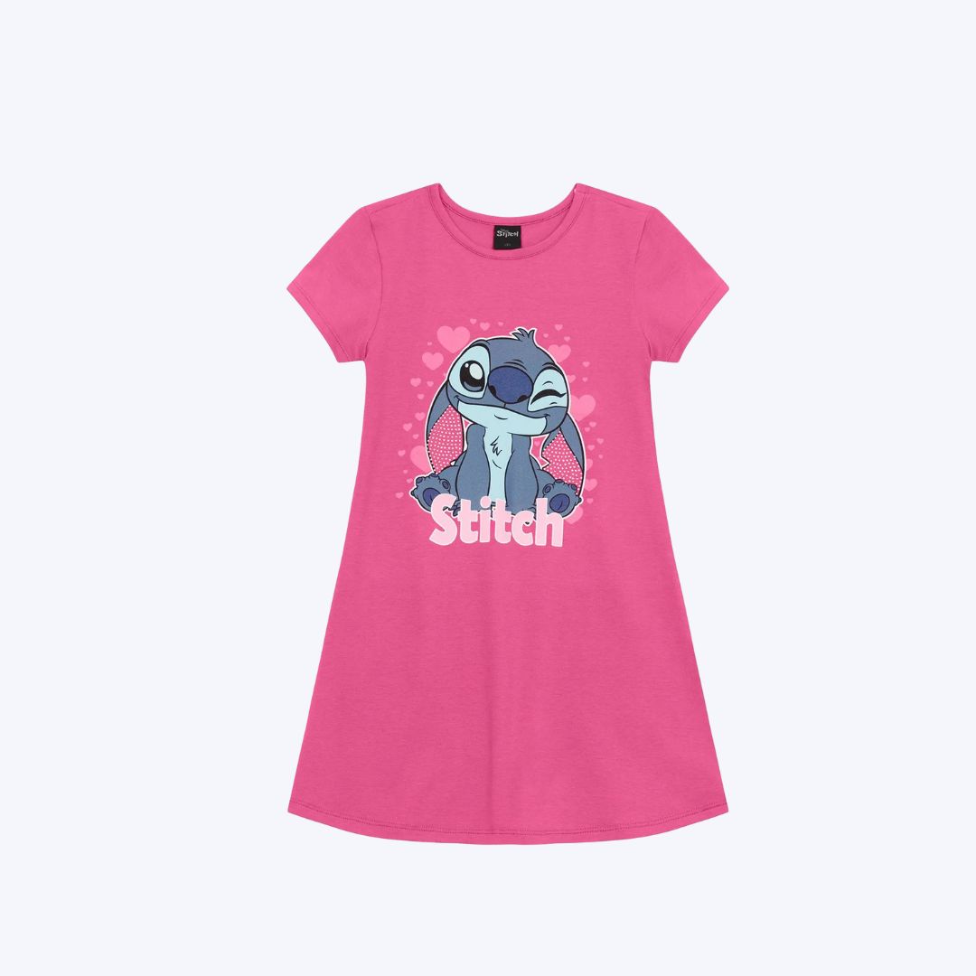 Vestido Manga Curta Stitch Infantil Menina Brandili