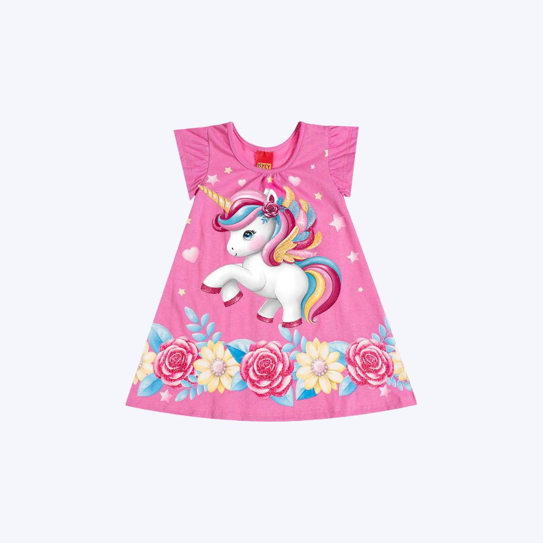 Vestido Manga Curta Unicórnio Bebê Menina Kyly