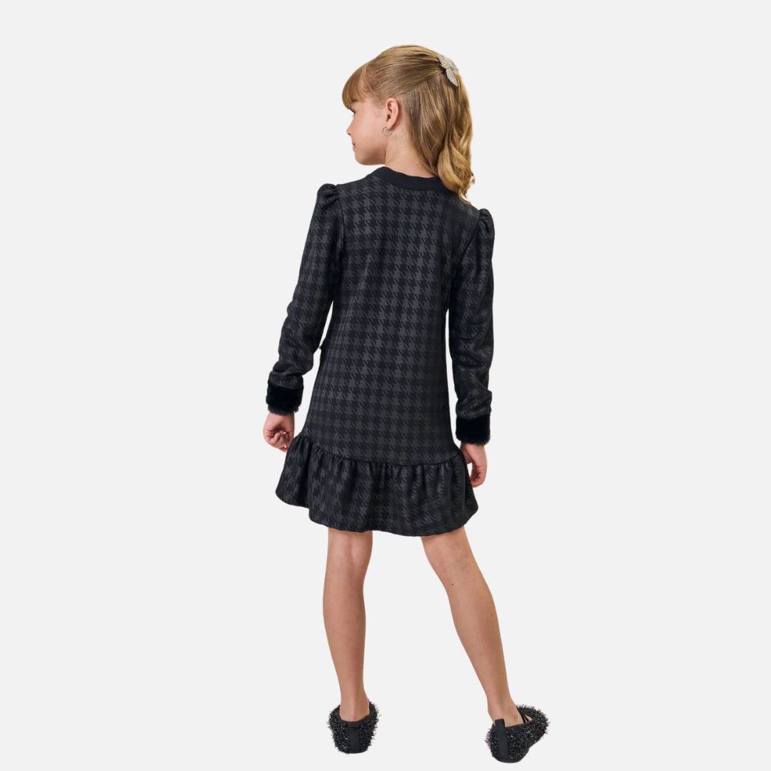 Vestido Manga Longa em Malha Pied Poule Infantil Menina Infanti