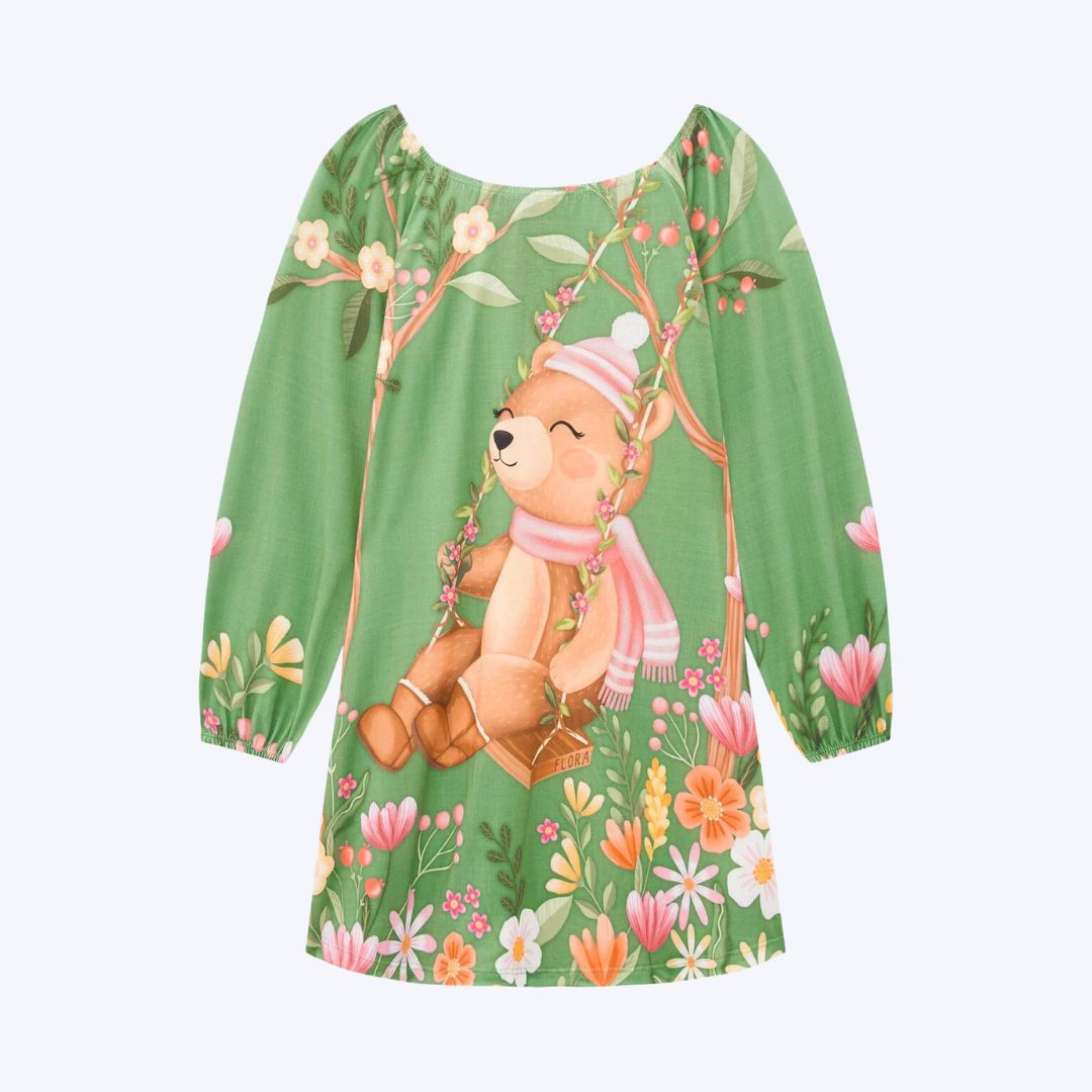 Vestido Manga Longa Estampa Ursinho Infantil Feminino Infanti
