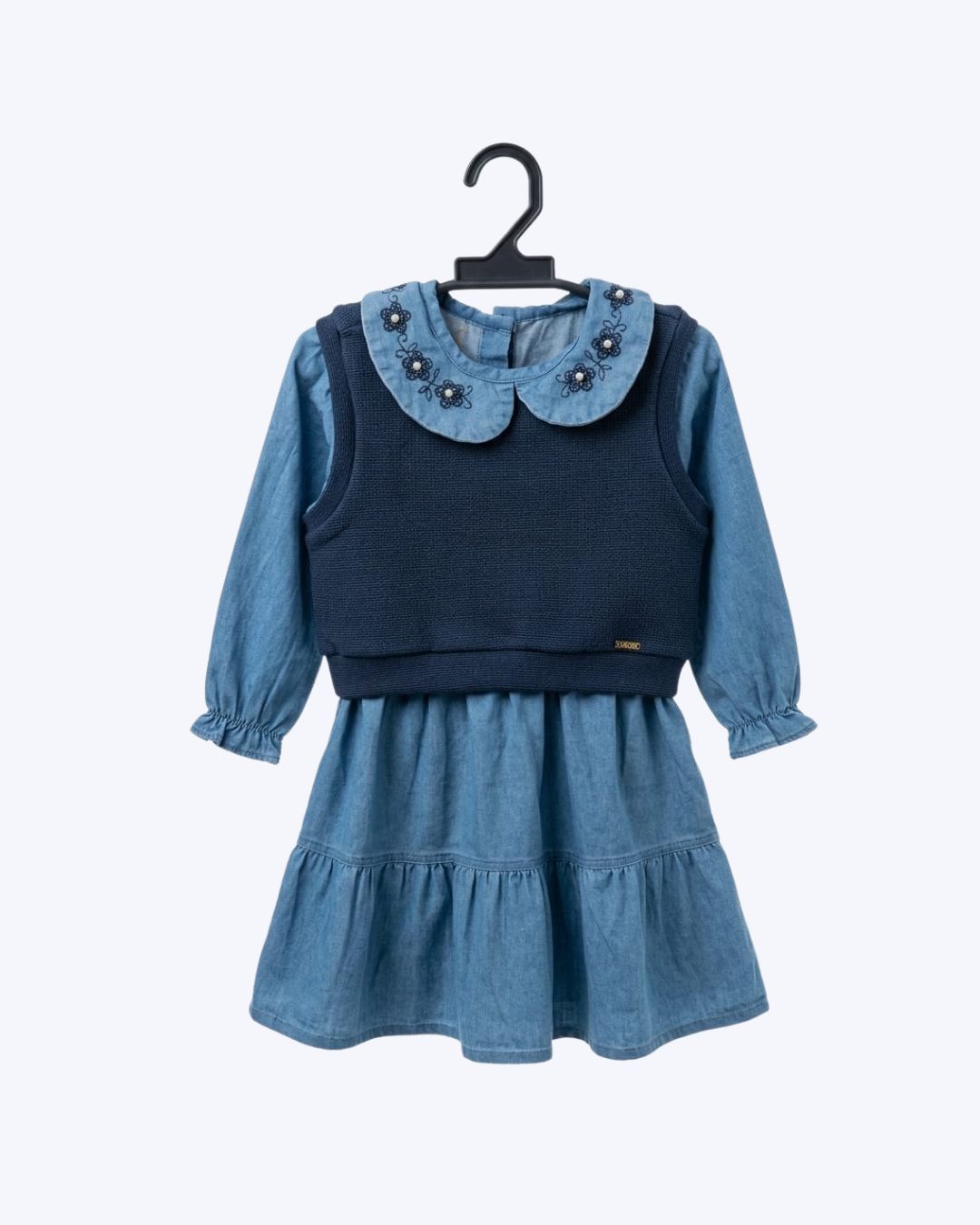 O Vestido Manga Longa Jeans com Colete Infantil Feminino Vigat 4101 é a escolha ideal para adicionar estilo e aconchego ao guarda-roupa da sua menina. Este encantador conjunto da marca Vigat combina a robustez e o estilo atemporal do jeans com a delicadeza e o conforto do colete tricot. Projetado para o público infantil feminino, o vestido possui uma gola com charmosos detalhes de florzinha com pérola, conferindo um toque de sofisticação e doçura. É uma peça versátil e moderna, perfeita para diversas ocasiões durante o outono, garantindo que sua filha esteja sempre bem-vestida e confortável.