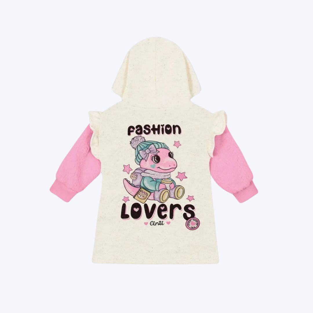 Vestido Manga Longa Moletom Dinossauro Costas Bebê Menina Mundo Cinti