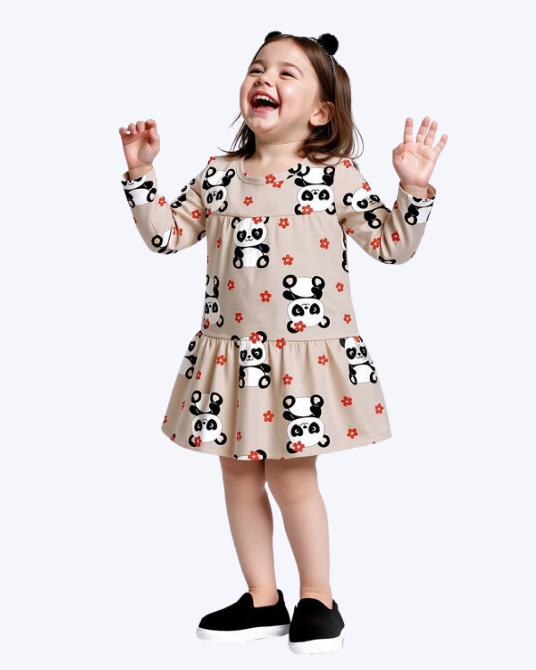 O Vestido Manga Longa Panda Infantil Feminino é a escolha perfeita para vestir sua filha com delicadeza e conforto em todas as ocasiões. Confeccionado em 100% algodão, este vestido proporciona um toque macio e agradável à pele sensível das crianças, ideal para dias mais amenos. Seu design encantador apresenta uma estampa rotativa de pandinha, super fofa e divertida, que as meninas vão amar. Disponível nas cores azul marinho e bege, oferece versatilidade para combinar com diferentes acessórios e calçados, tornando-o um item essencial no guarda-roupa infantil feminino.