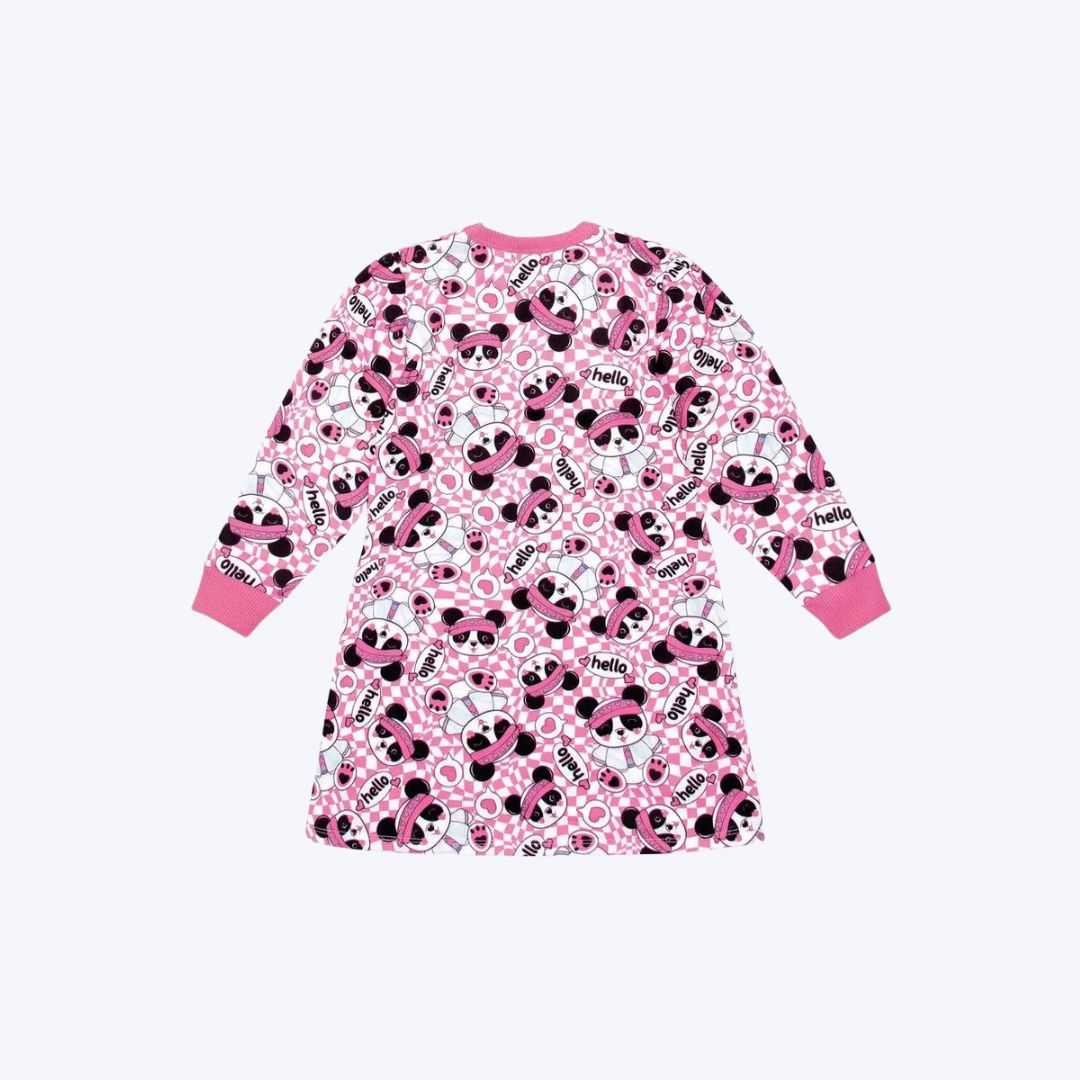 Confeccionado em suplex power felpado, o vestido oferece excelente elasticidade, aconchego e um toque macio à pele, ideal para os dias mais fresquinhos. Sua estampa total, com o tema Lovely Panda, garante um visual alegre, divertido e moderno, perfeito para as pequenas que adoram se destacar com personalidade.