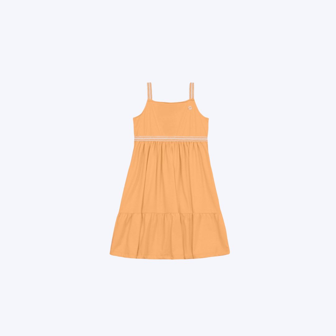 O design do Vestido Brandili é pensado para o conforto diário, ideal para brincadeiras e passeios em dias quentes.