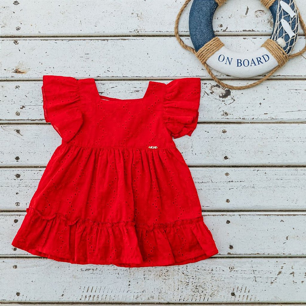 Vestido Vermelho em Laise Bebê Menina - Vigat