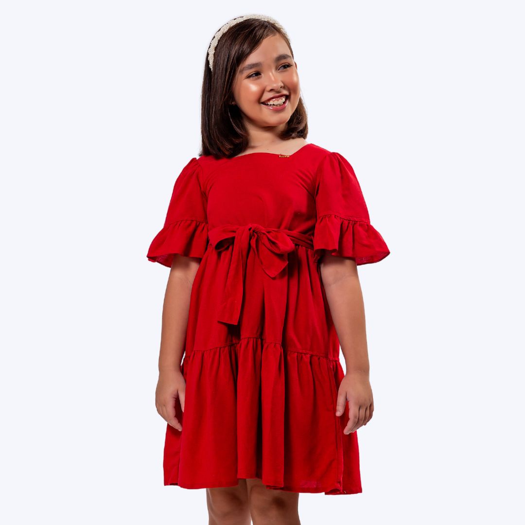 Vestido Vermelho Manga Curta Infantil Menina Vigat