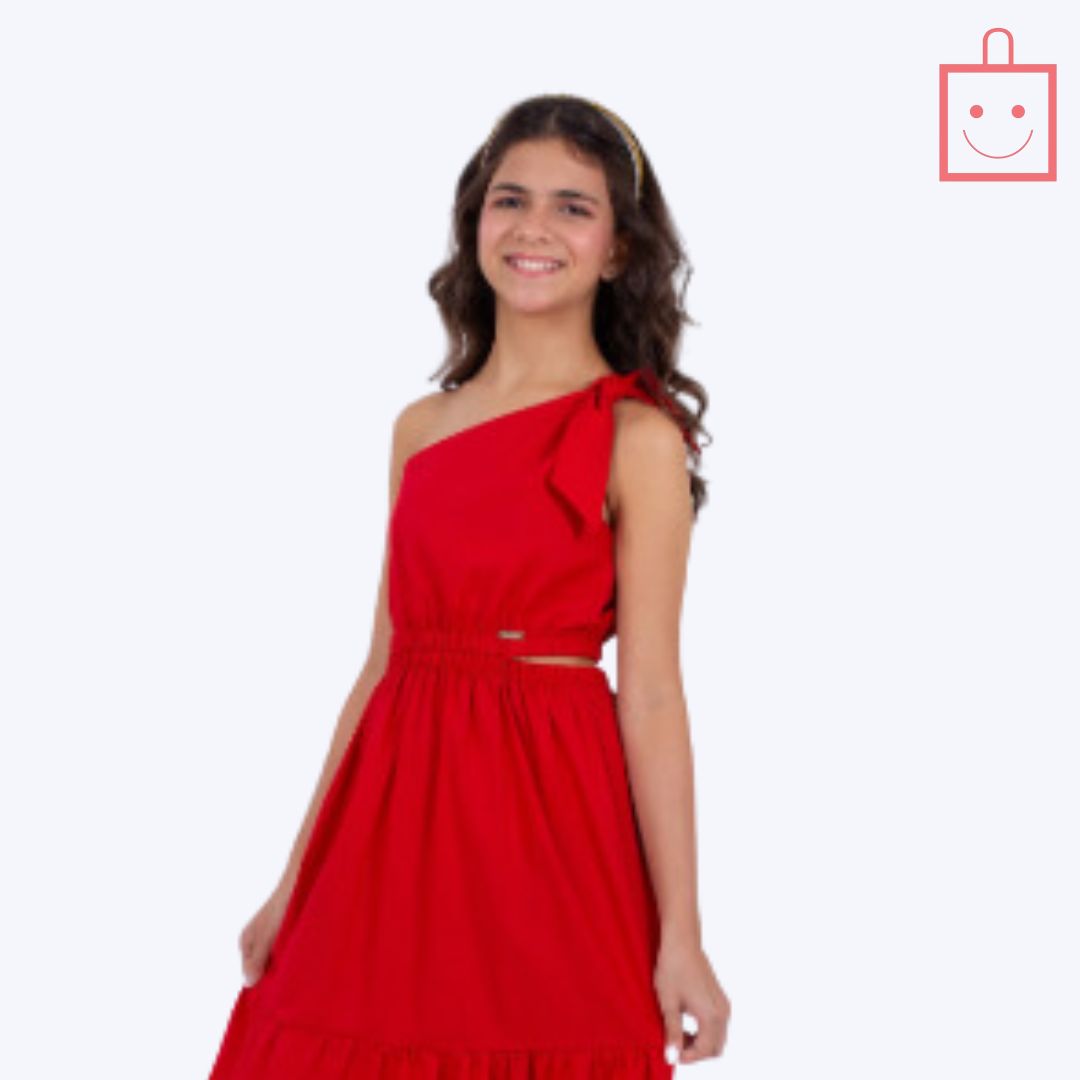 Descubra o Vestido Vermelho Ombro Único Juvenil peça deslumbrante que combina estilo, conforto e praticidade para as meninas. Confeccionado em 100% algodão de alta qualidade, este vestido juvenil oferece um toque suave e agradável, perfeito para o dia a dia e ocasiões especiais. Seu design com decote de um ombro só confere uma assimetria sofisticada e moderna. Detalhes como a amarração no ombro e o elástico no decote garantem um ajuste perfeito e liberdade de movimento. O recorte na cintura com abertura e elástico proporciona um caimento fluido e confortável, adaptando-se ao corpo da criança sem apertar, o que facilita o vestir e o tirar. A marca Precoce é conhecida pela atenção aos detalhes, criando modelos que permitem que as crianças se movimentem livremente. Com sua cor vibrante, este vestido vermelho é ideal para festas e celebrações, garantindo um visual elegante e superconfortável para as meninas arrasarem e se divertirem com total liberdade.